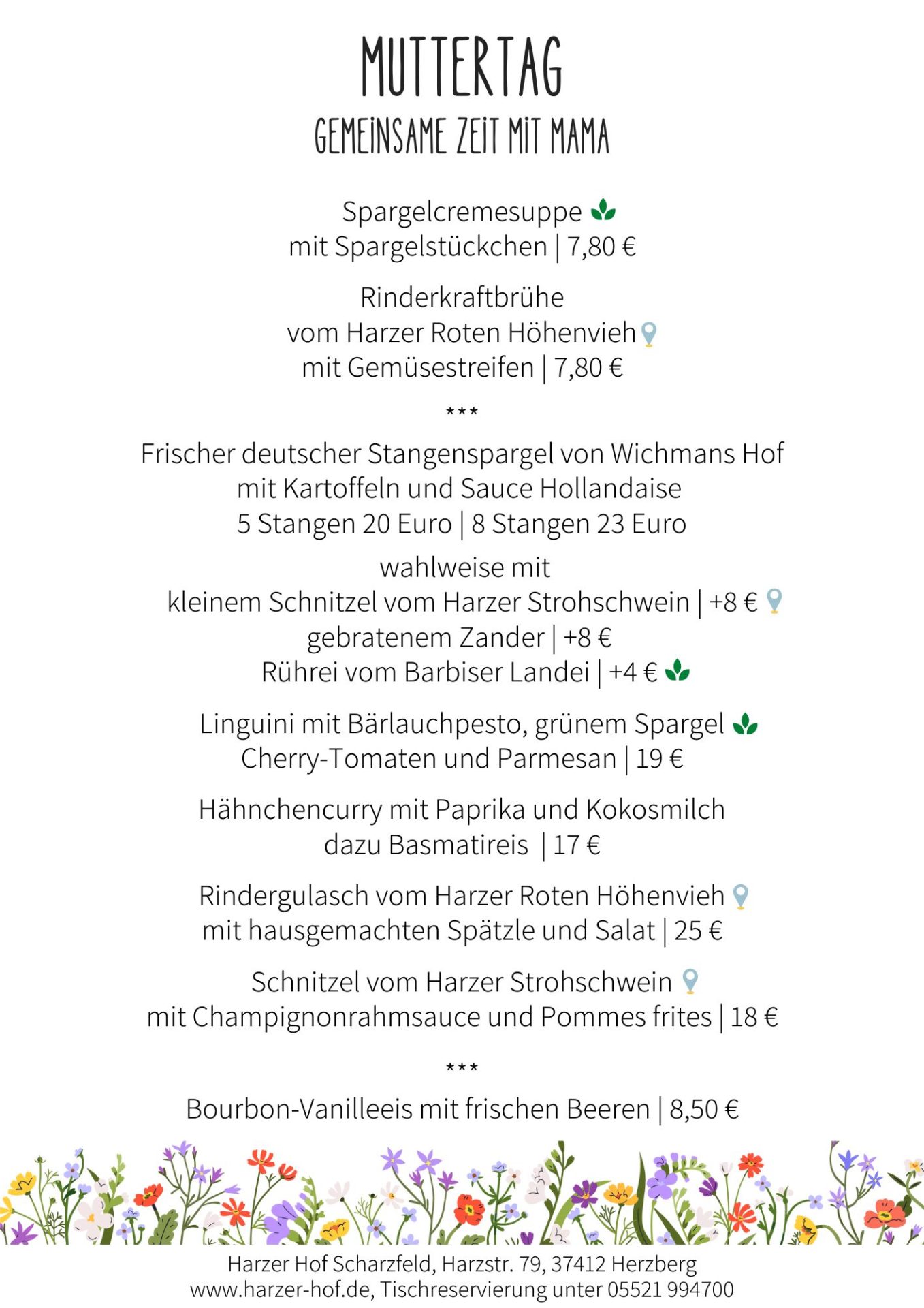 Speisekarte Harzer Hof